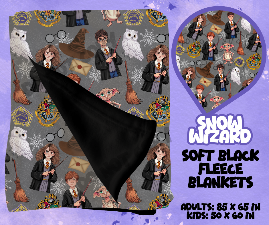 SNOW WIZARD - SOFT BLACK FLEECE THROWS RUN 12-PREORDER CLOSING 9/22