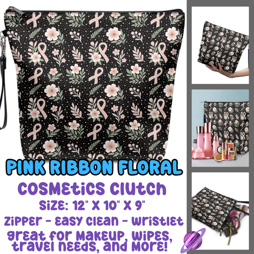 PINK RIBBON FLORAL - COSMETIC CLUTCH RUN 3 PREORDER CLOSES 9/17