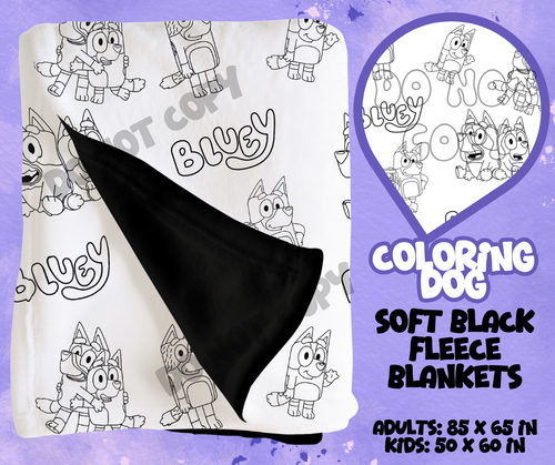 COLORING DOG - SOFT BLACK FLEECE THROWS RUN 12-PREORDER CLOSING 9/22