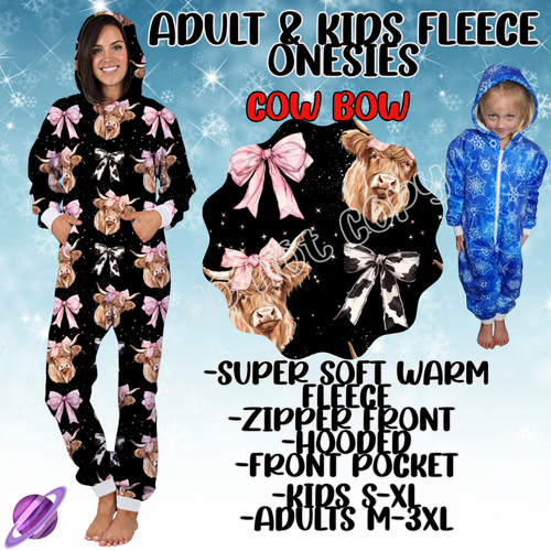 COW BOW - ADULT & KIDS FLEECE ONESIES CLOSING 9/28